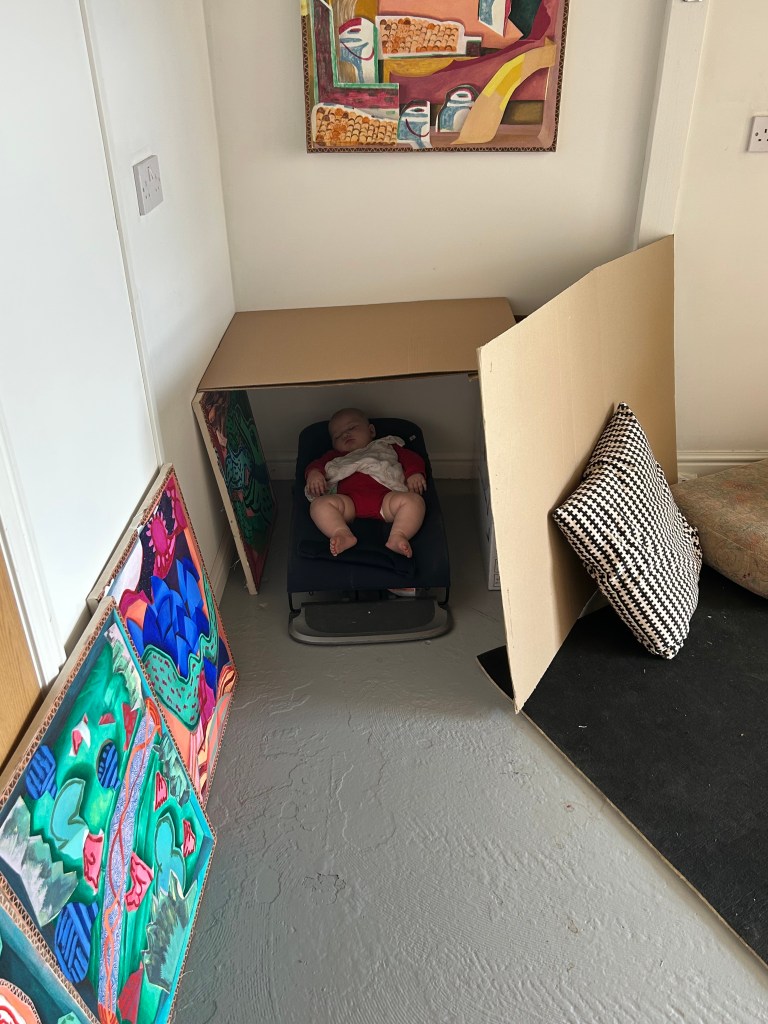 But as of new legislation in 2025 (eligible for working parents the term after the baby turns 9 months), the baby-toddler can join their sibling at nursery (thanks to the 30 hours free childcare for working parents) and so the artist resolves to wait for true solitude to resume their practice in January 2026. God willing.