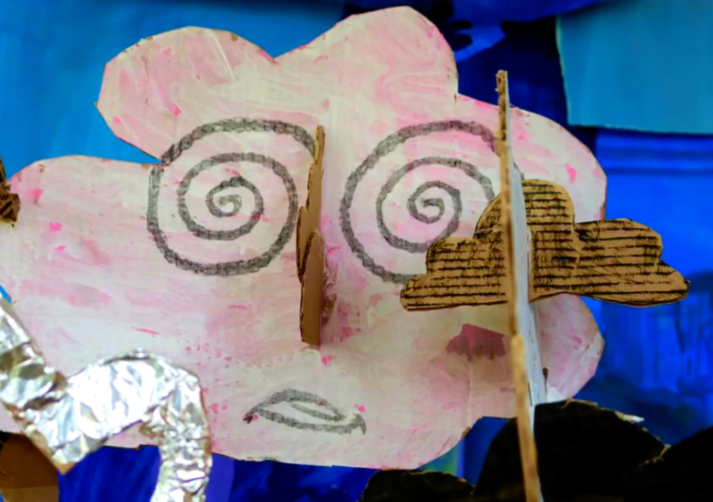 Lumps of earth, torrents of water, vaporous shapes and spiralling eyes; Clod brings together the work of artists Anna Brass and Lottie Stoddart in an exhibition that has emerged from a series of sporadic studio visits over the last year. This energetic exchange of ideas and imagery has resulted in two stop-motion animations: Stoddart’s ‘Stellar’ and Brass’ ‘Chute’, looping worlds full of spiralling stairs and intestinal flumes.