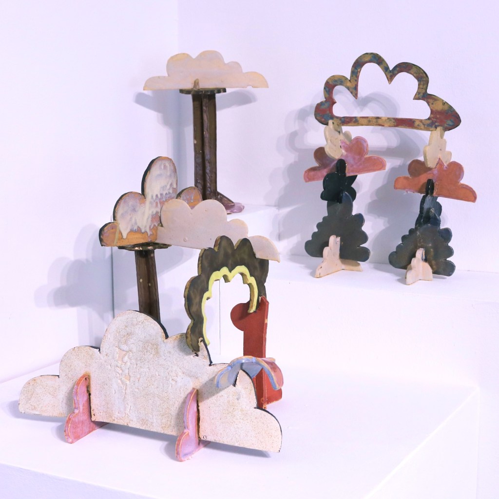 2021, glazed stoneware, cardboard, glue, paper, acrylic, found images.